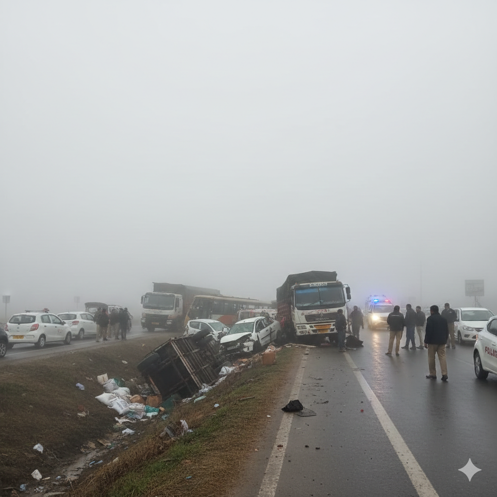 हनुमानगढ़-श्रीगंगानगर मेगा हाईवे पर भीषण सड़क हादसा: कोहरे का कहर